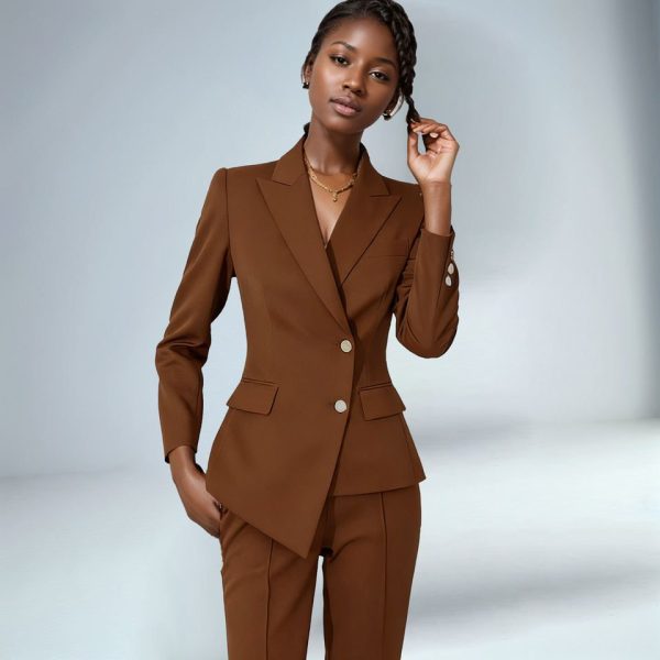 Crafted from premium-quality suiting fabric, the material is smooth, breathable, and durable, offering excellent structure and shape retention. The tailored silhouette enhances your natural form while providing comfort for all-day wear. The rich brown tone brings an earthy, refined elegance that pairs effortlessly with neutral shades, denim, and classic accessories.