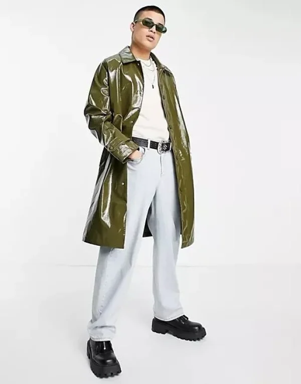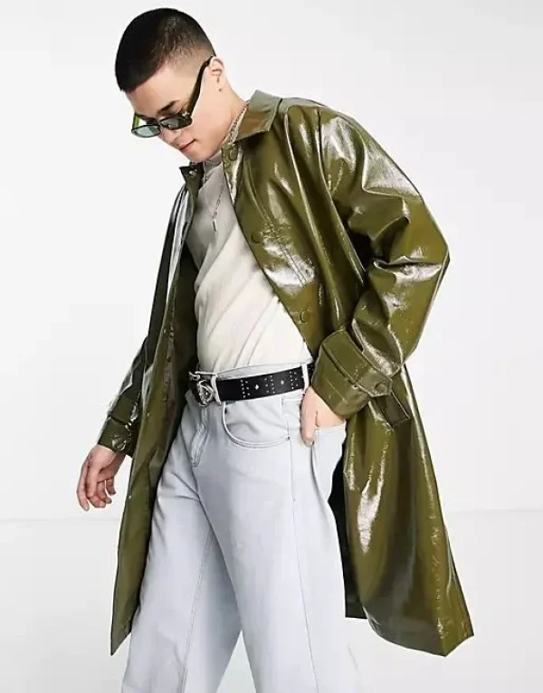 Men’s Green Leather Long Coat – Genuine Leather Trench Style Outerwear | WEAR THE ORIGINALS (OGNLS)