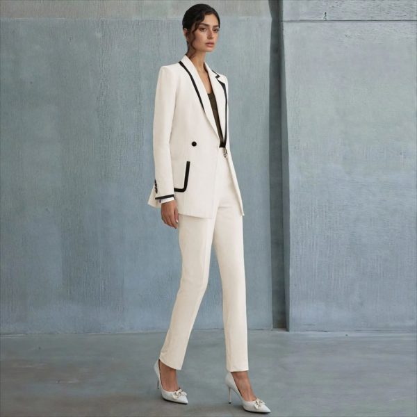 The slim fit silhouette creates a sharp, modern look while remaining comfortable for all-day wear. The crisp white color adds sophistication and versatility, making it ideal for business wear, formal occasions, office meetings, events, and smart-casual styling. Pair it effortlessly with matching trousers, skirts, denim, or dresses for a complete, confident look.
